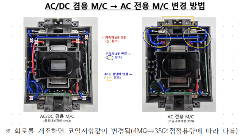 °¡. AC/DC°â¿ë°ú ACÀü¿ë M/CÀÇ ÀåÁ¡À» Ȱ¿ëÇϰí, ACÀü¿ë M/CÀÇ ´ÜÁ¡À» ±Øº¹ Çϱâ À§Çؼ­ ¾Æ·¡¿Í °°ÀÌ AC/DC°â¿ë M/CÀÇ È¸·Î¸¦ °³Á¶ÇÑ ÈÄ¿¡ Àü´Ü¿¡ ÄÚÀÏ -·ÎÄ¿¸¦ ¼³Ä¡ÇÏ¿© äÅ͸µÀ» ¹æÁöÇÔ